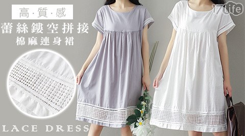 搶先看 高質感蕾絲鏤空拼接棉麻連身裙便宜